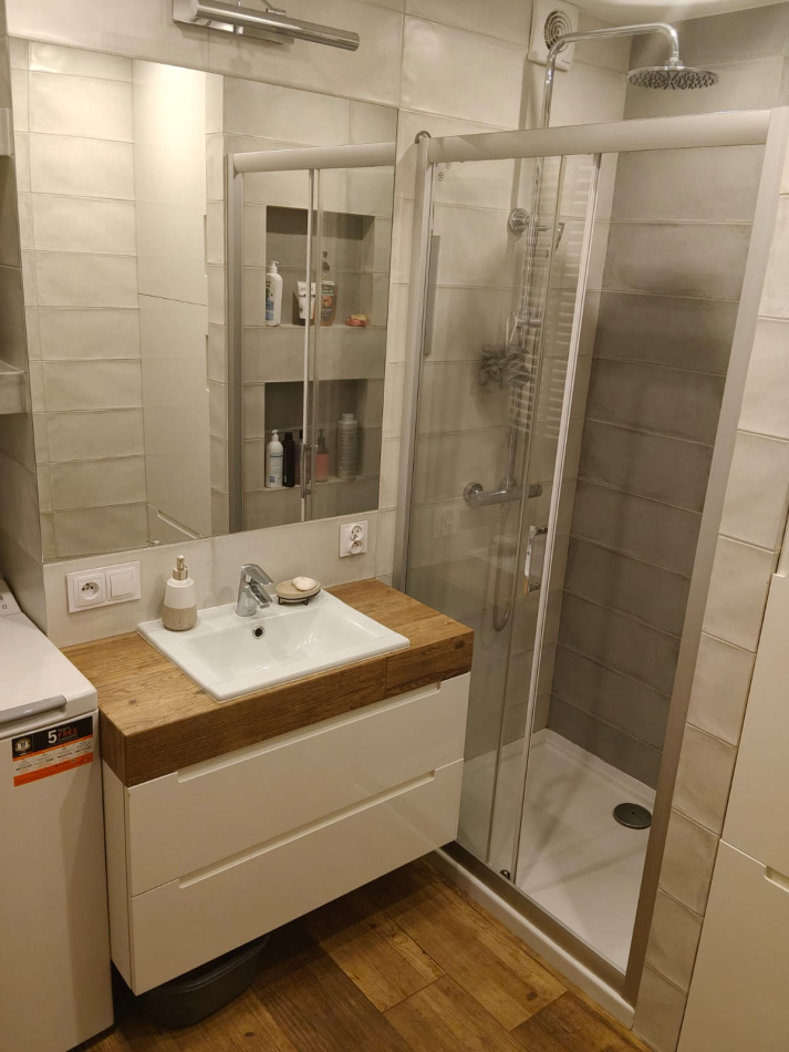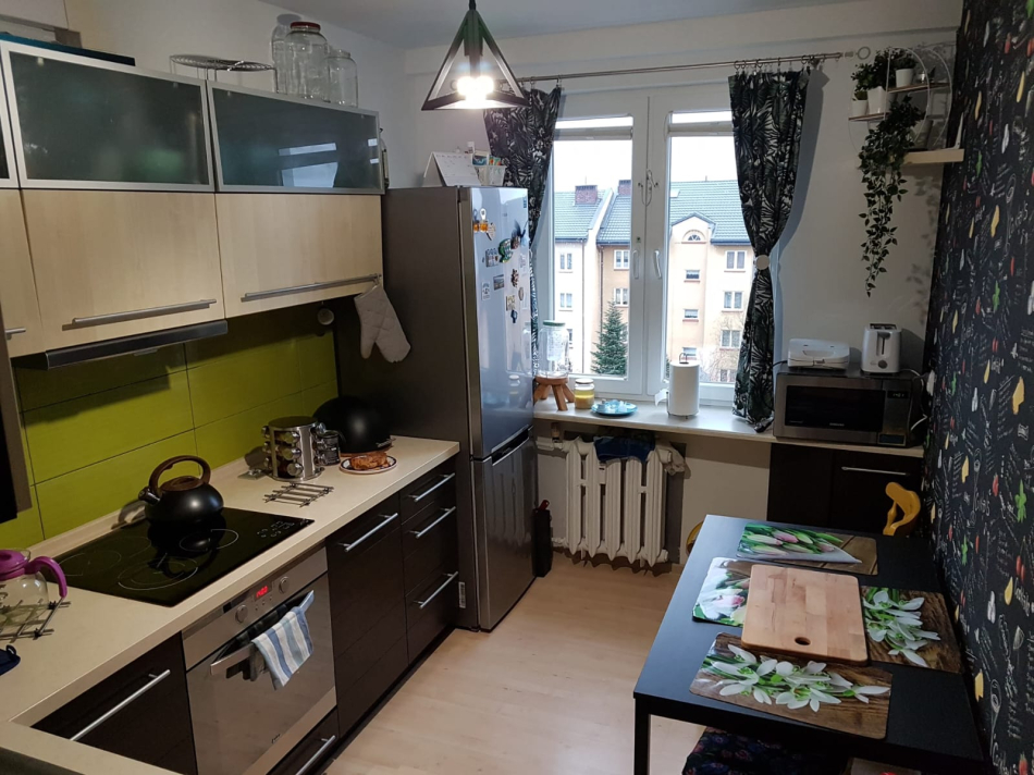 Układ: 2 pokoje, kuchnia, łazienka, osobne WC, duży przedpokój z dwiema szafami wnękowymi.