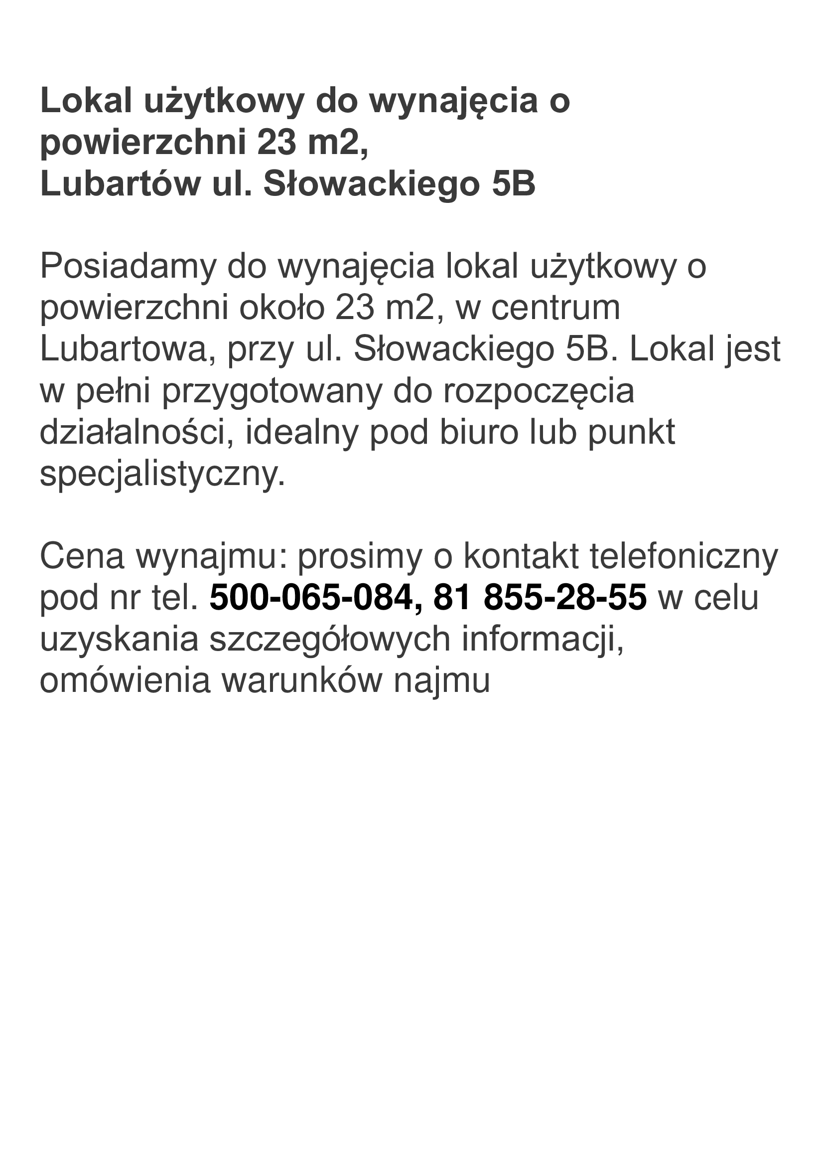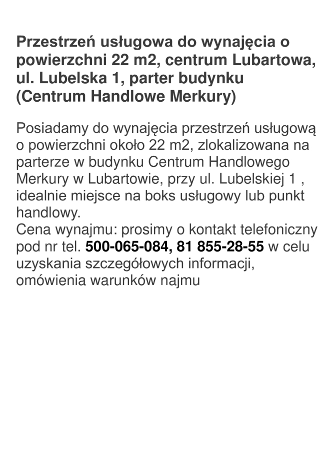 Poinformuj, że ogłoszenie znalazłeś/aś na Lubartow24.pl